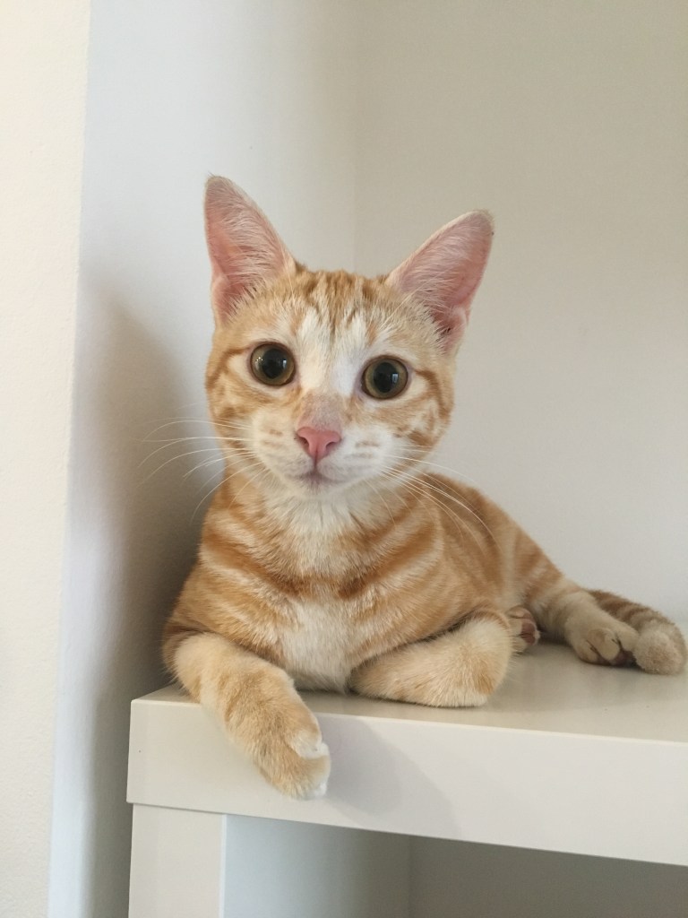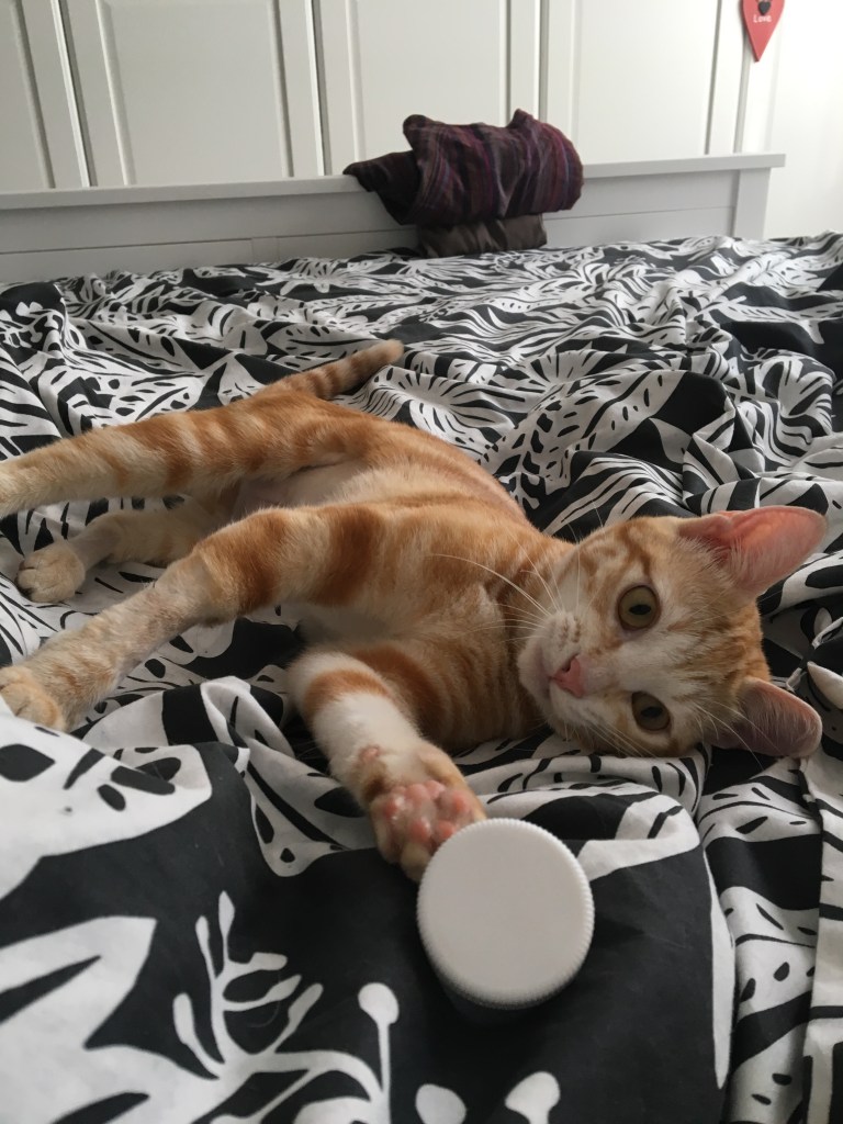Unfortunately, we lost one little boy, Ray to parvo after a few weeks, despite the best veterinary care and a huge fight from him. Rose and her brother Bud continued to grow and thrive. Bud was adopted by my sister and her partner, who already had two cats and then came the time to find Rose a new home. I just couldn’t do it. I put off and delayed and put my head in the sand about making an adoption post for her on social media. My partner kept asking me if I’d had any success until, eventually, I told him that I just didn’t want to do it. I wanted to keep her. It took a while for him to give in to me, but give in he did. So here she stayed. ❤